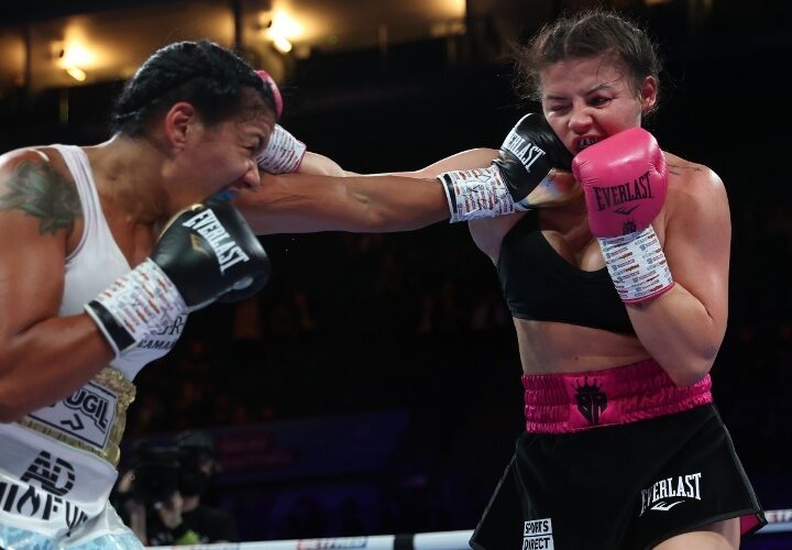 Nottingham – Former world champion Erica Farias bounced back from last year’s decision loss to Mikaela Mayer, with a ten round split decision over unbeaten Sandy Ryan. (photos by Mark Robinson) Farias had lost his last three fights, all by decision, to Mayer and back to back wars with Jessica McCaskill. All three were world title fights. One judge scored ...