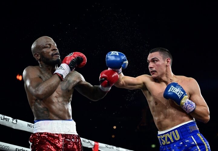 Popular undefeated hometown favorite Tim Tszyu dominated former world champion Tony Harrison with a ninth-round TKO to win the Interim WBO super welterweight title Sunday, before 11,740 rabid pro-Tszyu fans at Qudos Bank Arena in Sydney, Australia. Showtime televised the fight in the United States. With the win Tszyu became the mandatory challenger to undisputed super welterweight king Jermell Charlo. ...