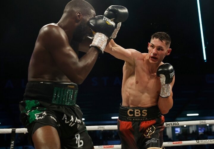 Vitality Stadium, Bournemouth – For the WBO cruiserweight title, Chris Billam-Smith (18-1, 13 KOs) put in a shocking performance as he scored three knockdowns to become a world champion, with a twelve round majority decision over previously undefeated Lawrence Okolie (19-1, 14 KOs). (photos by Lawrence Lustig) Okolie was also deducted two points for constant holding. The scores were a ...