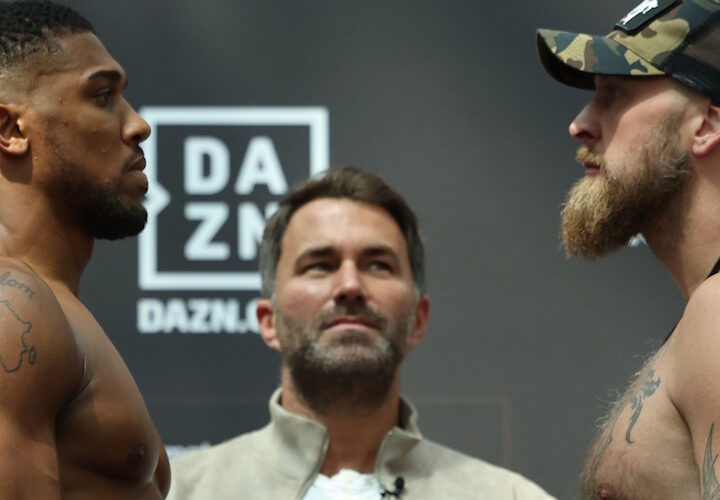 Tonight’s action in London featuring the heavyweight main event between Anthony Joshua and Robert Helenius at The O2 Arena Live Worldwide on DAZN. >>>>CLICK HERE FOR THE LIVE SCORECARD<<<< On a night of heavyweight action in the Capital, IBF mandatory world title challenger Filip Hrgovic clashes with Australia’s undefeated contender Demsey McKean, Fan favourite Derek Chisora returns to the scene ...