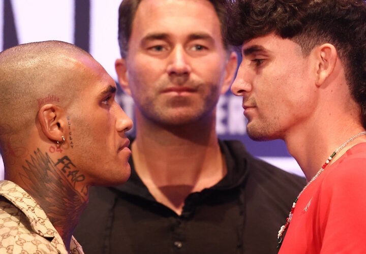 Richardson Hitchins’ clash with Jose Zepeda Zepeda is part of a Matchroom card in Orlando, with co-main action in the form of the return of British star Conor Benn (21-0, 14 KOs) who faces Mexican Super-Welterweight Rodolfo ‘Sinaloita’ Orozco (32-3-3, 24 KOs). (photos by Ed Mulholand) Jessica McCaskill (12-3 5 KOs) and Sandy Ryan (6-1 2 KOs) clashing in a ...