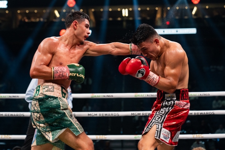 T-Mobile Arena, Las Vegas – In a middleweight fight, Elijah Garcia (16-0, 13 KOs) traded heavy punches for most of the fight to eventually drop and stop Armando Resendiz (14-2, 10 KOs) in the eighth round. They met in the center of the ring when the fight began, to exchange punches at close range. Both were connecting with solid punches ...