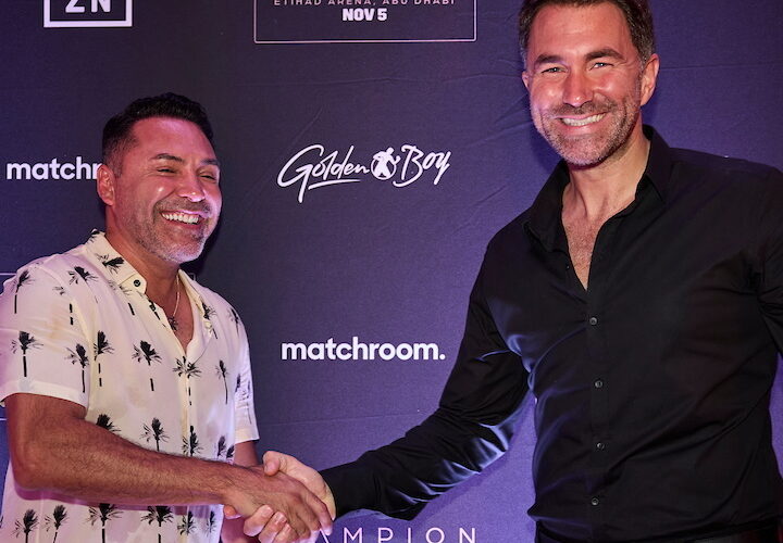 Oscar De La Hoya isn’t nearly as interested in an all-Golden Boy versus Matchroom card as Eddie Hearn. The Golden Boy Promotions founder questioned Saturday night whether his rival’s company has enough depth on its roster to put together that type of show, even if DAZN executives were willing to provide the funding to stream it. Hearn spoke optimistically about ...