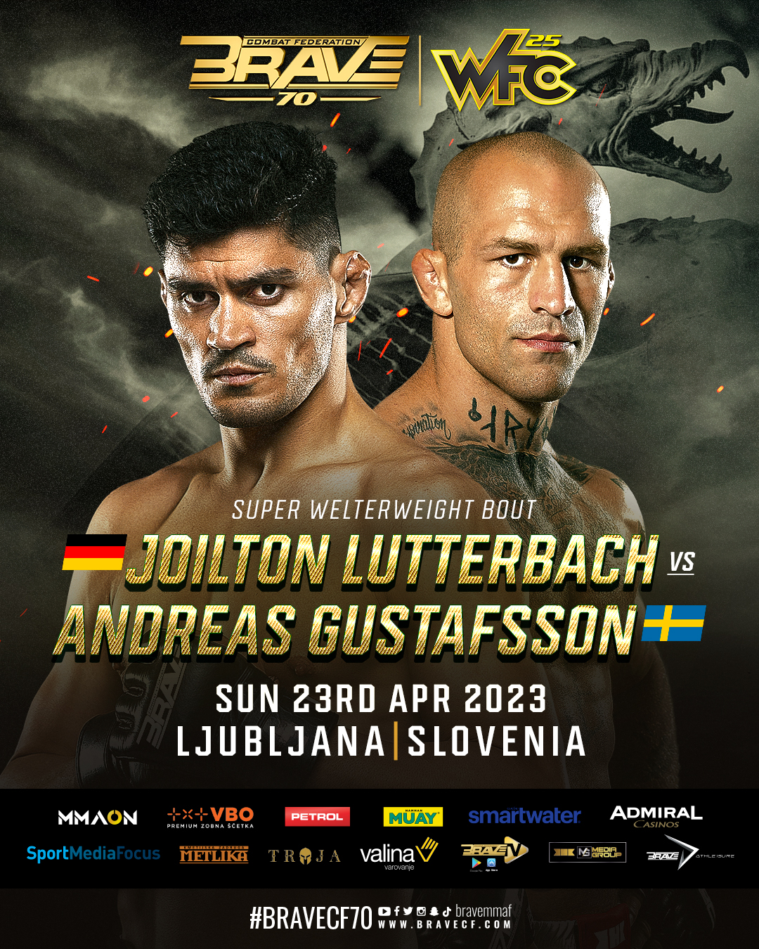 Now the fighter known as “Bane” is set to return to action against top-ranked super lightweight (165 pounds) Joilton Lutterbach in a super welterweight (175-pound) bout. The matchup will form the co-main event of Brave CF 70, which takes place April 23 in Ljubjana, Slovenia.