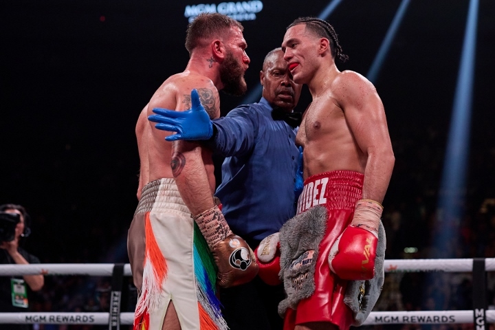 “Yeah, I mean, I’m a little disappointed I didn’t get the stoppage,” Benavidez said, “but you know, you guys seen how his face looked. You know, he was really bloody. And I was really imposing my will. I really beat him up really good and, like I said, I’m not really satisfied because I didn’t get the knockout. But this is a great way to get a victory, you know, it’s a dominating performance. It was a great performance. There’s a lotta things I can tweak in my game to make sure I get the stoppage next time.”