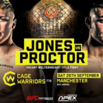 With around a minute of the contest’s opening round remaining, Jones floored Proctor for a second time with a brutal left hook.