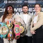 Despite numerous suffered knockdowns, Kirichenko was game and courageous. He didn’t hesitate to engage Baev in two-way exchanges, though he took more than he handed. Kirichenko was briefly down in round one, twice in round two, and once in round three. In the fourth round, he was able to stand his ground and gave Baev a solid fight.