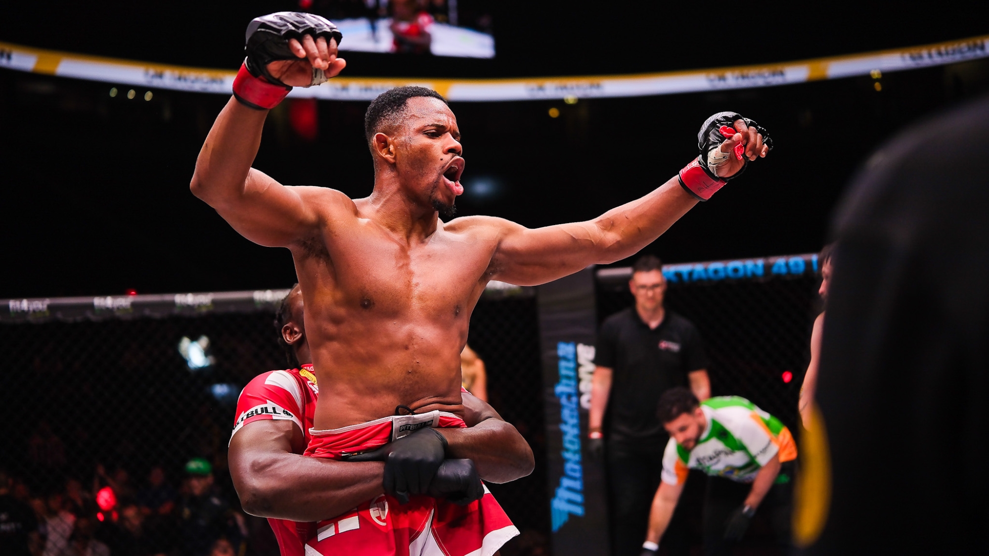 In the finale of Oktagon Challenge: England vs. Ireland, George Staines delivered a calm, composed performance to dominate, then finish, Denis Frimpong to become the Oktagon Challenge champion.