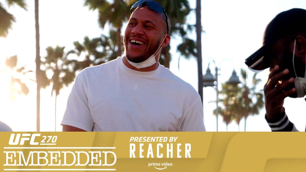 Ahead of the event, the UFC’s “Embedded” cameras are following the fighters behind the scenes as they work their way through fight week, from their final moments at home to their arrival in California and their media obligations before the weigh-ins and the final faceoffs before fight night itself.