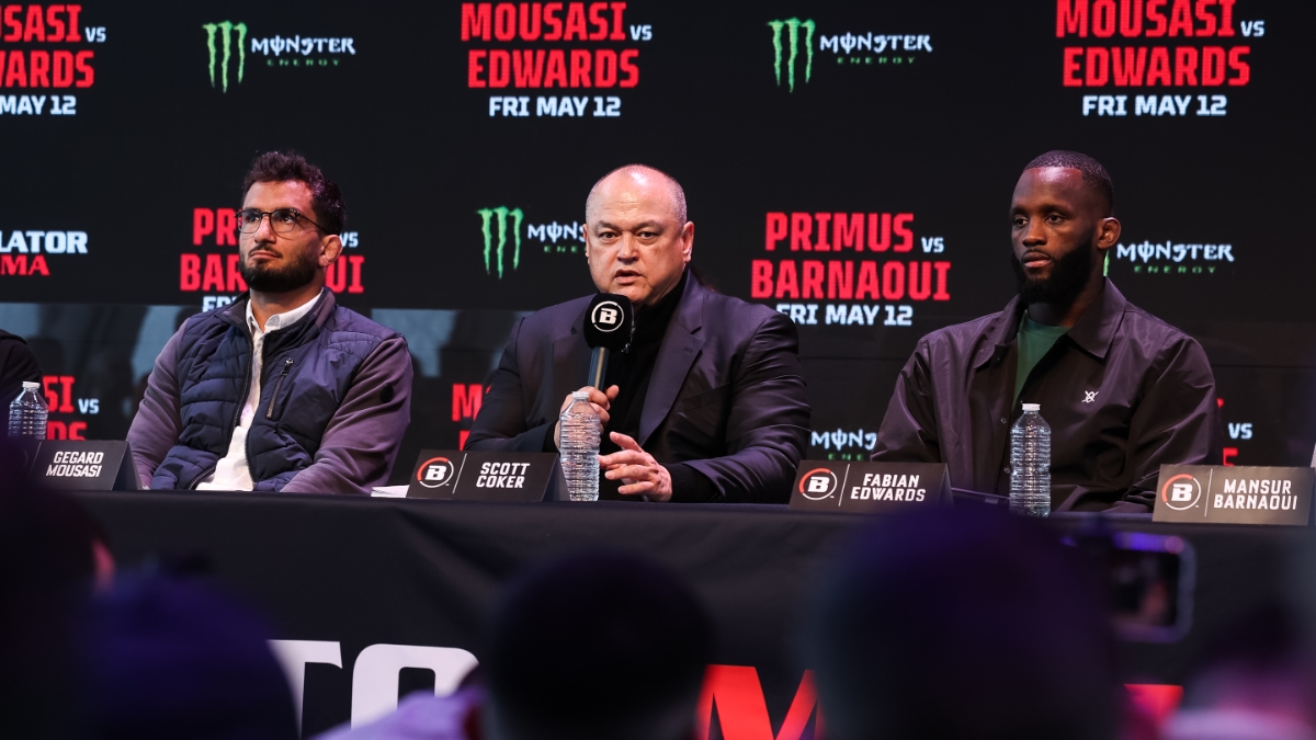 Joining Coker on the dais were former middleweight champion Gegard Mousasi and middleweight contender Fabian Edwards, who will face off in the main event on Friday night at the AccorHotels Arena, plus co-main eventers Mansour Barnaoui and former lightweight champ Brent Primus, who will do battle in the quarter-finals of the Bellator Lightweight Grand Prix.