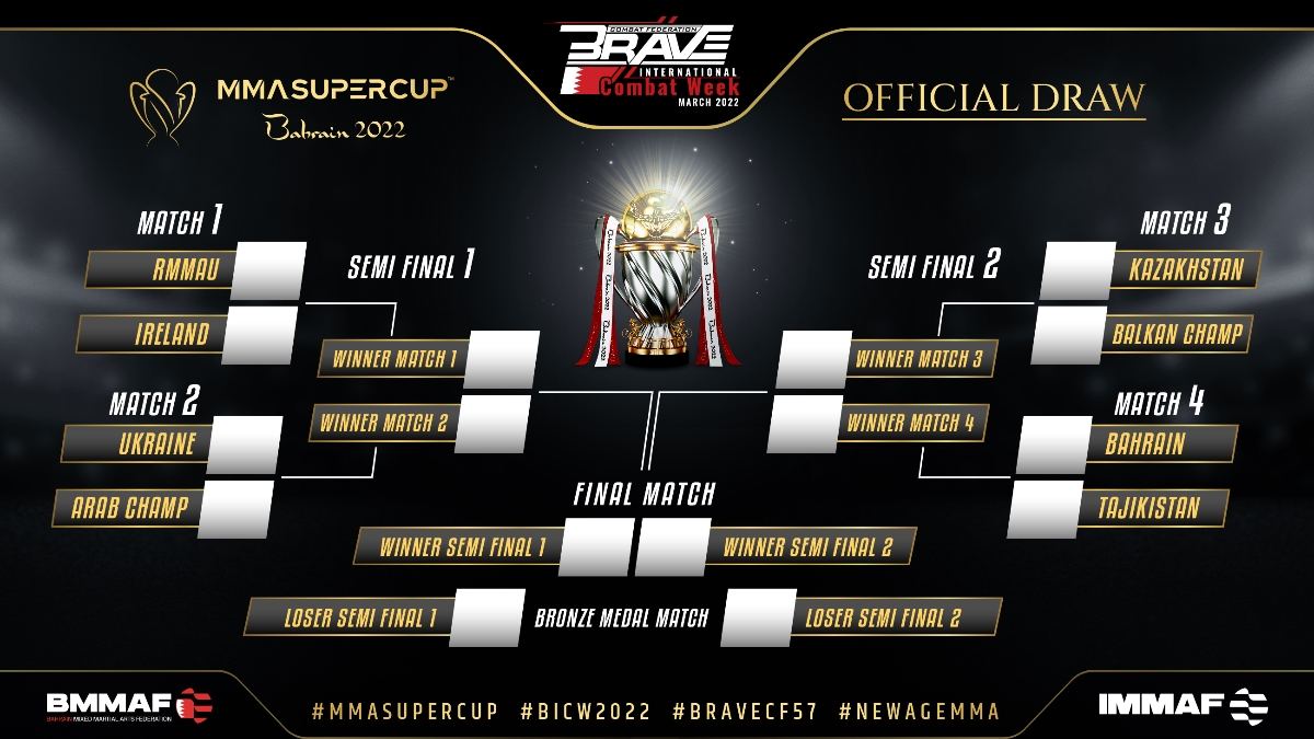 The tournament, a joint venture between the governing body of amateur MMA, IMMAF, and Bahrain-based MMA organization Brave CF, features eight teams that will face off in a series of elimination rounds to crown the top national team in amateur MMA, with the winning national federation winning $100,000.