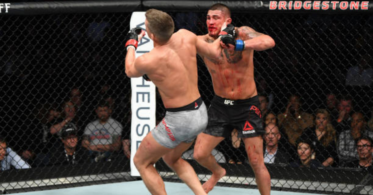 It landed flush, completely shutting Wonderboy’s lights off in spectacular style. Any follow-up strikes were unnecessary as Thompson was knocked out as soon as Pettis’ Hail Mary shot landed perfectly.
