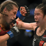 Despite each man’s extensive credentials as talented wrestlers, neither man resorted to grappling in any sense in the early rounds and were unwilling to concede the centre of the Octagon to the other in this brutal brawl.