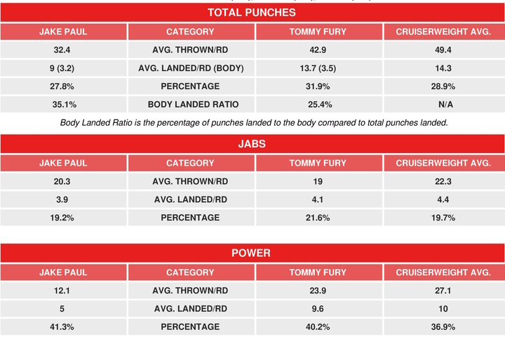 Jake Paul vs. Tommy Fury – CompuBox Head To Head Statistics