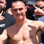 Alimkhanuly finally connected with his vaunted left uppercut. It came behind a pair of jabs late in round five, which forced Gualtieri to dip his legs and stagger into the ropes. He was able to remain upright and rode out a right hook to the body to make it out of the round.