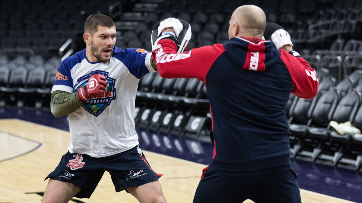 The two fighters worked out for the media on the Phoenix Suns court, with Bader, Moldavsky and Russian legend (and Moldavsky’s coach) Fedor Emelianenko taking the opportunity to take a couple of jump shots in front of the cameras.