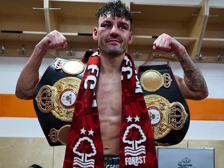 Warrington battered Wood to the body, and landed a healthy dose of chopping right hands, putting about twelve rounds of punishment on Wood in roughly five rounds’ time. In Wood’s corner after five rounds, a stream of blood was flowing down his right cheek from a gash above his eye, swelling was becoming bulbous beneath that same eye, and blood was gurgling from his mouth as he responded to Davison’s calm advice to not paw with his jab anymore.