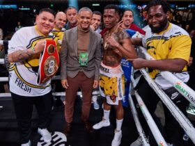 Callum Walsh (10-0, 8 KOs) stopped Dauren Yeleussinov (11-4-1, 10 KOs) in the ninth round to win the WBC Continental ...
