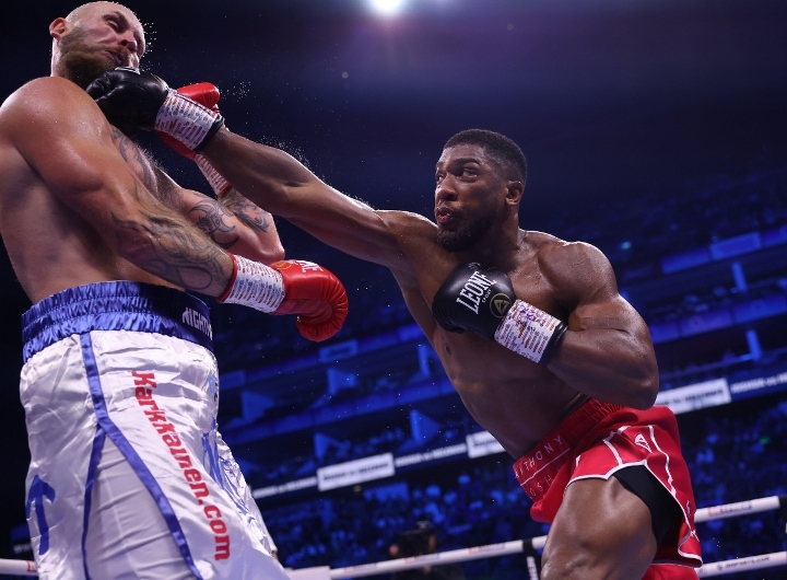 In the first round, Helenius came out firing early on and pressing forward. Joshua was jabbing and looking to box. Helenius was going to the body at times, while Joshua was jabbing well.