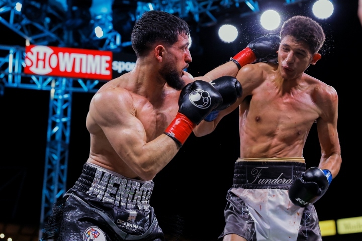 In the fourth, Fundora really began to do damage with big shots on the inside and had Mendoza in some trouble.