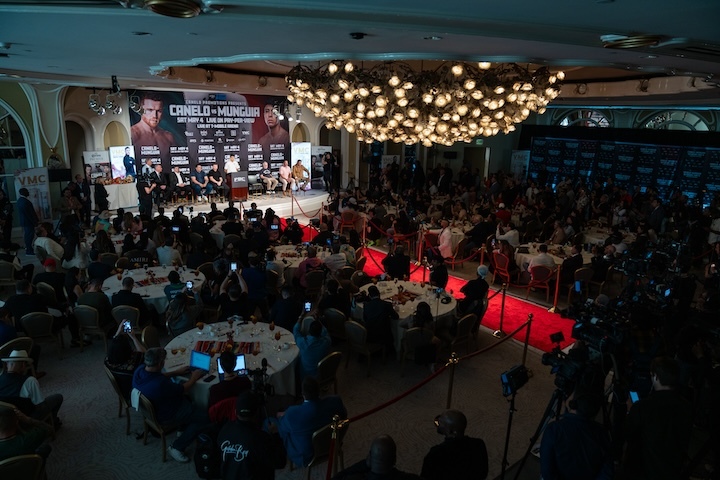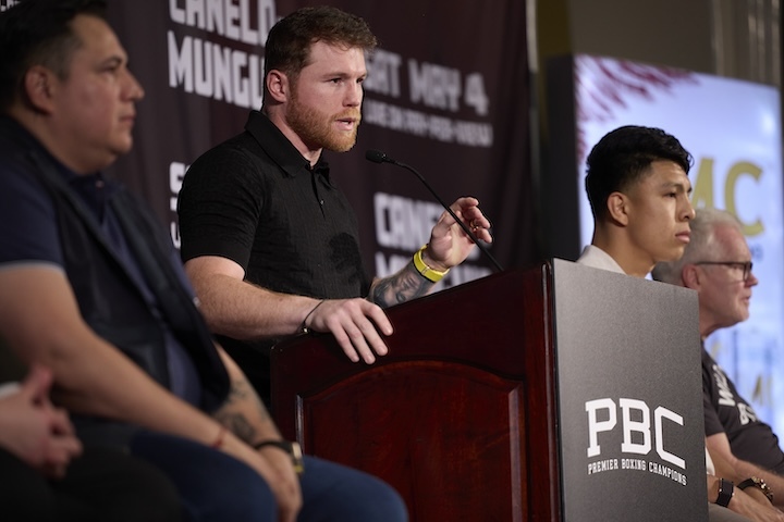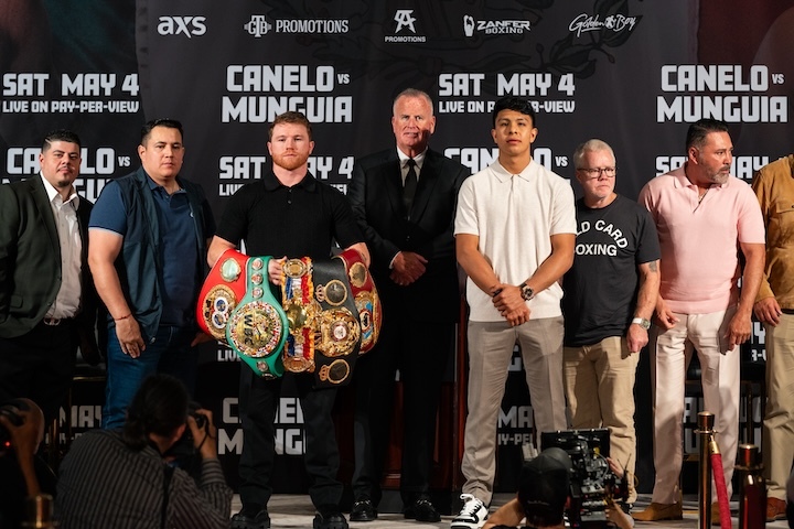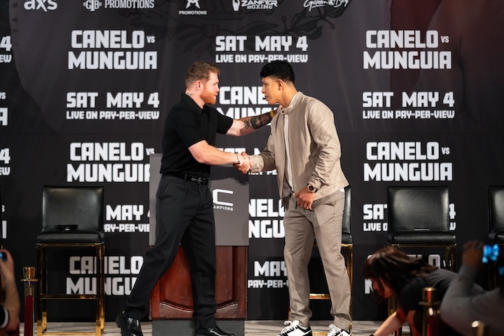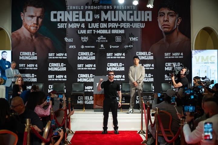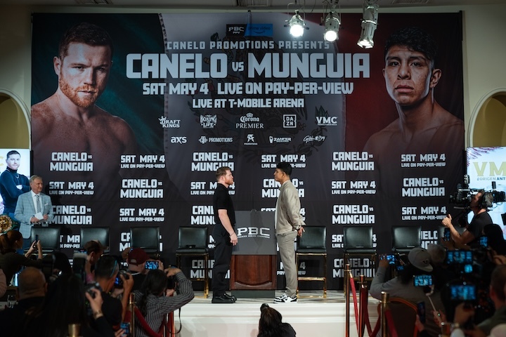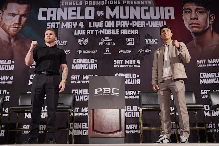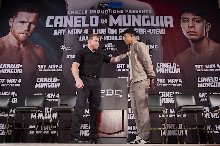 Undisputed super middleweight world champion Canelo Álvarez and unbeaten former world champion Jaime Munguía went face-to-face for the first time Tuesday at a press conference in Los Angeles, CA. The two will fight Saturday, May 4 headlining a PBC Pay-Per-View event on Prime Video from T-Mobile Arena in Las Vegas.