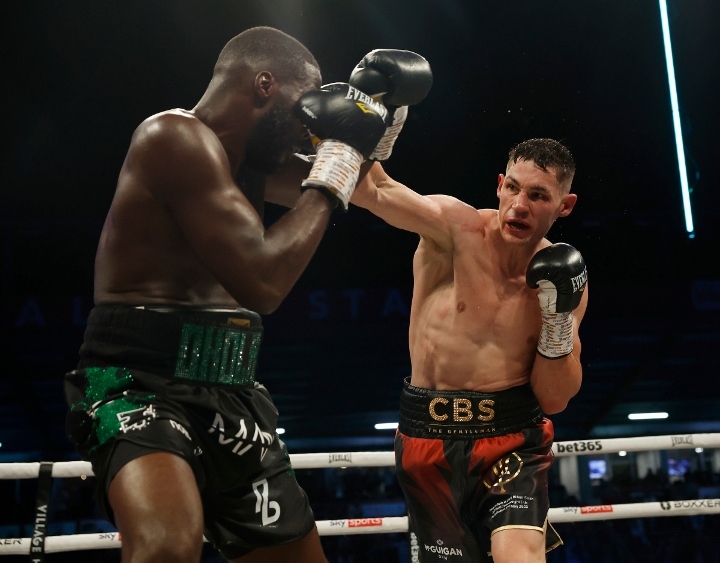 Okolie was also deducted two points for constant holding. The scores were a criminal 112-112 draw, and 116-107 and 115-108 for Billam-Smith.