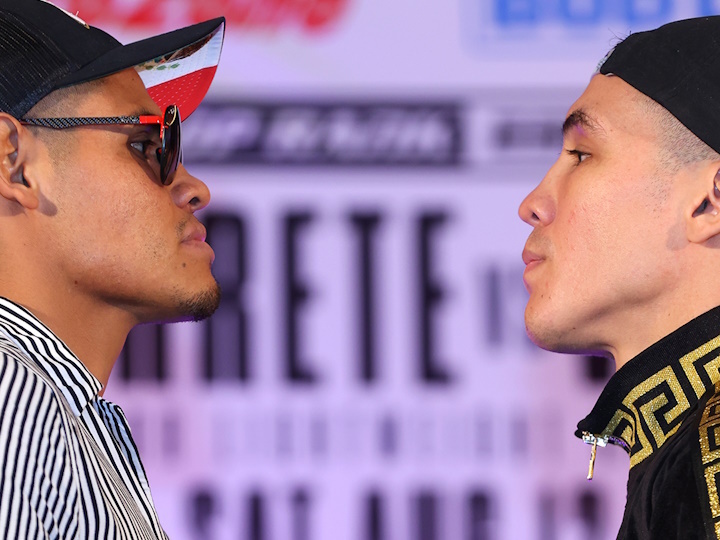 Emanuel Navarrete (37-1, 31 KOs) and Oscar Valdez (31-1, 23 KOs) are ready for an all-Mexican duel. (photos by Mikey Williams.