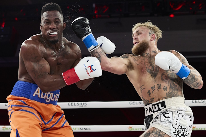 Orlando, Florida – In a cruiserweight fight, social media star Jake Paul (8-1, 5 KOs) blasted out Andre August (10-2, 5 KOs) with a big uppercut in the first round. (photos by Esther Lin)
