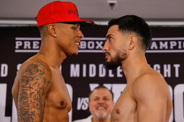 Unbeaten WBA “Regular” Super Middleweight Champion and Minneapolis fan-favorite David Morrell Jr. and undefeated mandatory challenger Aidos Yerbossynuly went face-to-face before they put their unbeaten records on the line live on SHOWTIME this Saturday, November 5 in a Premier Boxing Champions event from The Armory in Minneapolis. (photos by Esther Lin)