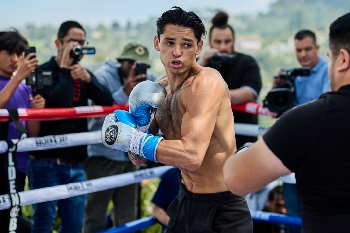Garcia has headlined fights across Los Angeles, Dallas and San Antonio, with fans packing the rafters to watch his meteoric rise. He now steps into the biggest fight of his career and a rare matchup of unbeaten superstars in the prime of their careers. The 24-year-old looked at home on Tuesday as he hit the pads in the ring assembled in the backyard of a mansion owned by reality TV personality and businesswoman Adrienne Maloof.