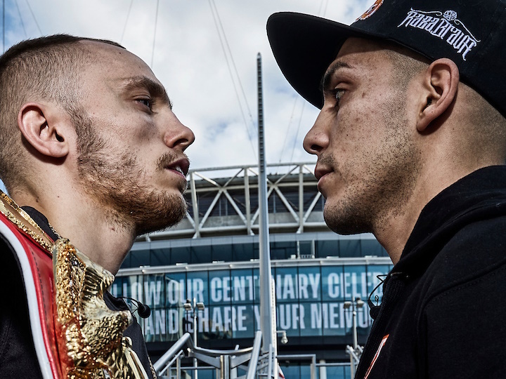 At The OVO Wembley Arena, London, reigning IBF ruler Sunny Edwards defends his world title against Chile’s Andres Campos in a world title triple-header on Saturday night. (photos by Mark Robinson)