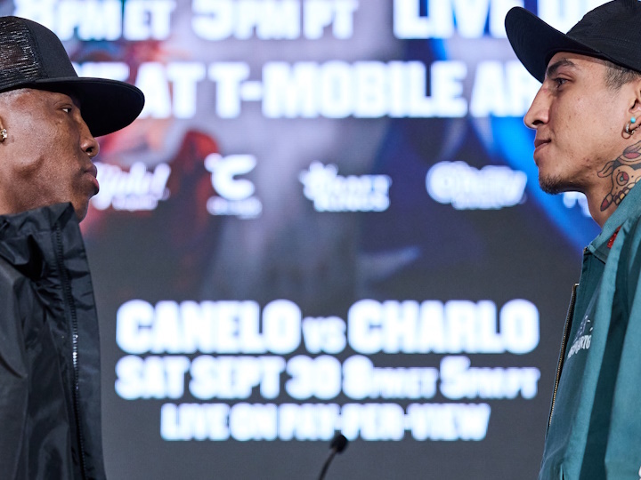 Fighters stepping into the ring on Saturday’s loaded Canelo vs. Charlo Showtime PPV undercard faced off Thursday at the final press conference before they enter the ring at T-Mobile Arena in Las Vegas. (photos by Esther Lin)
