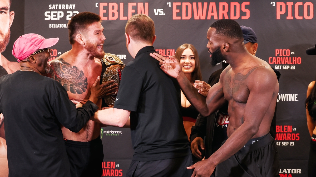 After the official weigh-ins, the fighters took to the stage later in the day for the official faceoffs, and security needed to intervene to separate Eblen and Edwards as tempers flared during their final faceoff.