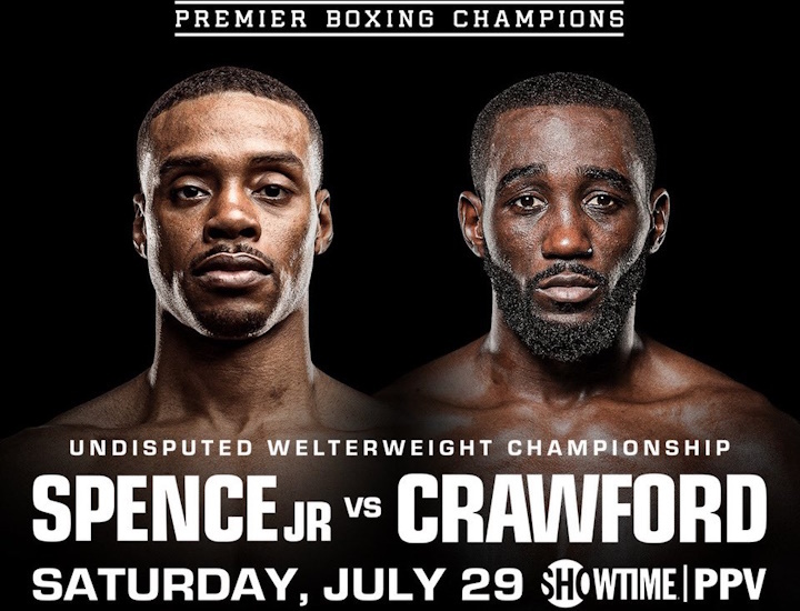 Crawford (39-0, 30 KOs), of Omaha, Nebraska, and Spence (28-0, 22 KOs), of DeSoto, Texas, will fight for Crawford’s WBO 147-pound championship and Spence’s IBF, WBA and WBC belts. Their 12-round fight will headline a Showtime Pay-Per-View event.