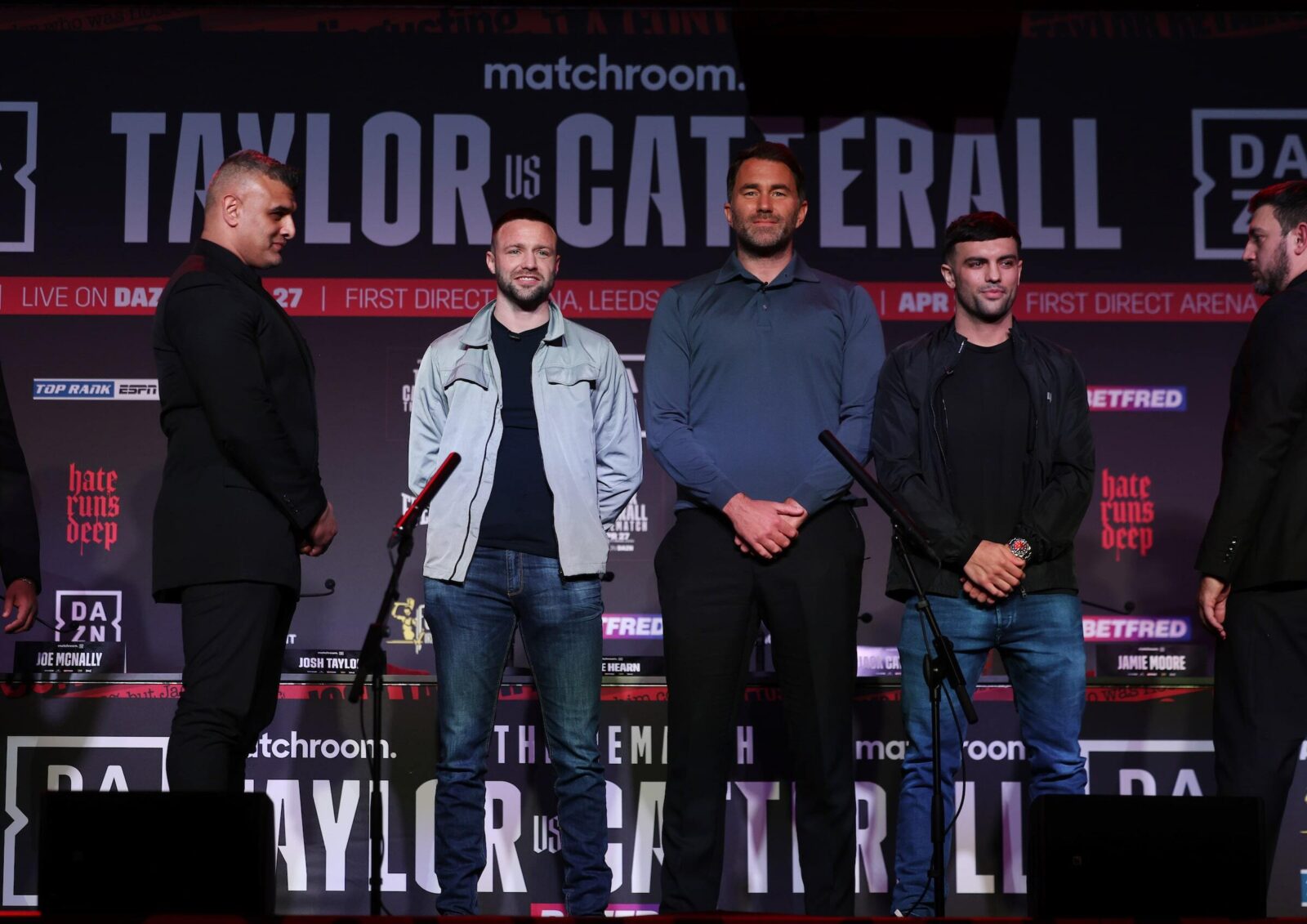“This is the first time I’ve been involved in a fight where they’re capable of attacking each other at any moment,” said Matchroom’s Eddie Hearn “Nobody even has to say anything. One of them can give a look and the other jumps up.