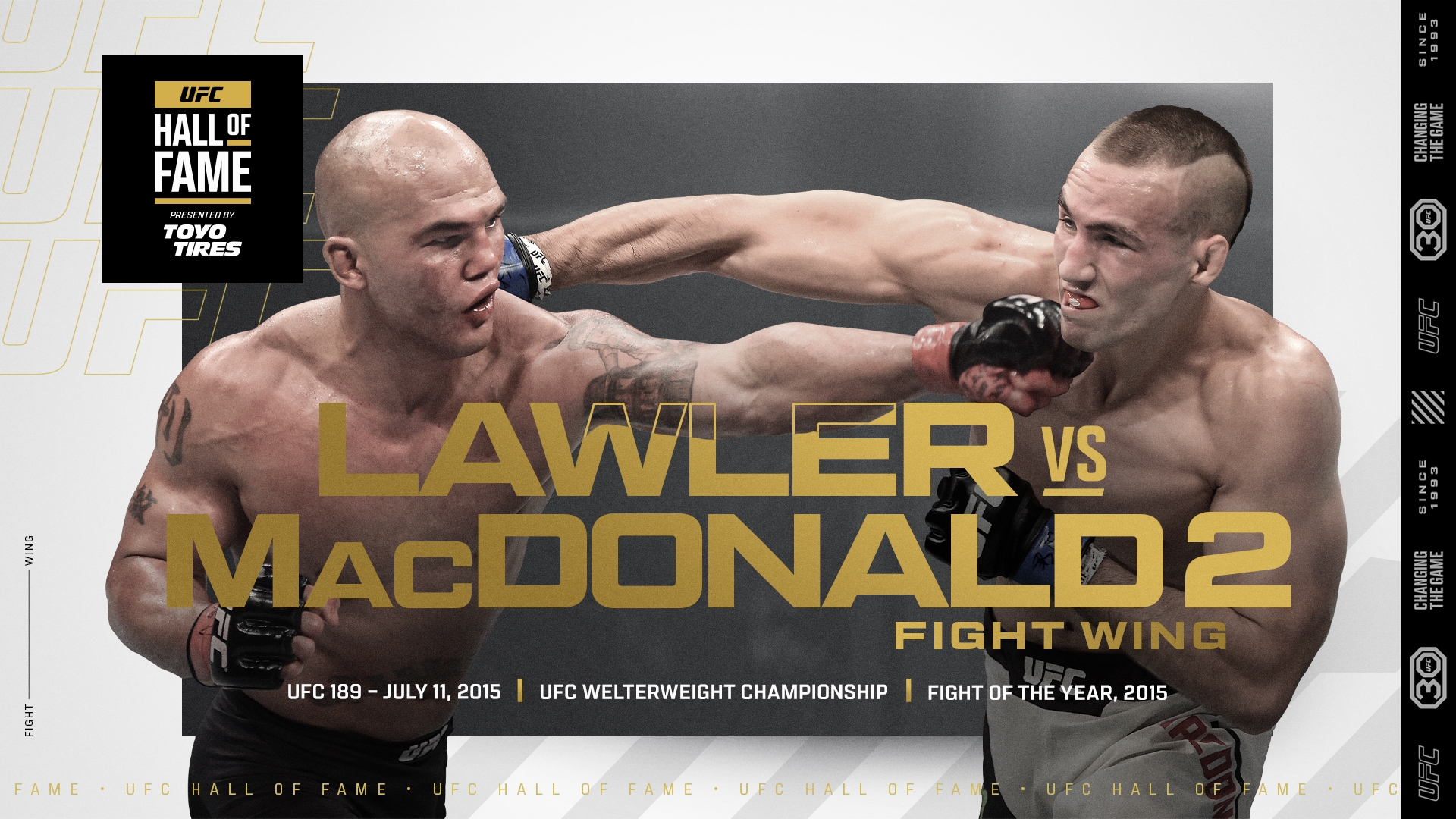 Lawler was inducted into the Fight Wing for his second fight with Rory MacDonald at UFC 189 in 2015, where Lawler stopped the Canadian to retain the UFC welterweight title in a fight many say is the greatest championship bout in UFC history.