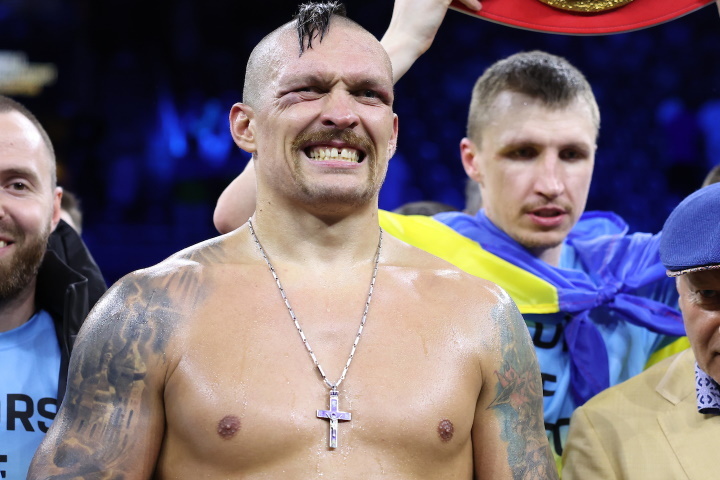 “I’m really happy to be back in Poland,” Usyk said. “This country greeted me well. I have become the WBO cruiserweight champion here, together with Krzysztof Glowacki. We’ve beaten each other [up] a little bit. Now for the next seven years, I have collected several belts. And now I’m back in Poland, here to defend them. I want to thank the people of Poland for the support that they are giving to Ukraine.”
